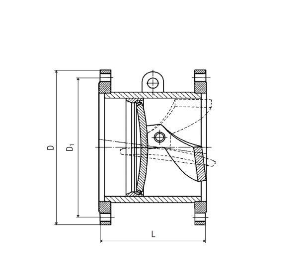 Затворы обратные поворотные с демпфирующим устройством DN500-1000 ОТТ-08.00-60.30.00-КТН-013-1-04 ТУ 3742-016-01297858-2007
