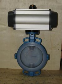 2-х ходовые регулирующие затворы поворотные с пневмоприводом для агрессивной жидкой среды с межфланцевым подключением и стойкостью к химикатам: Ру1,6Мпа Ду80/100