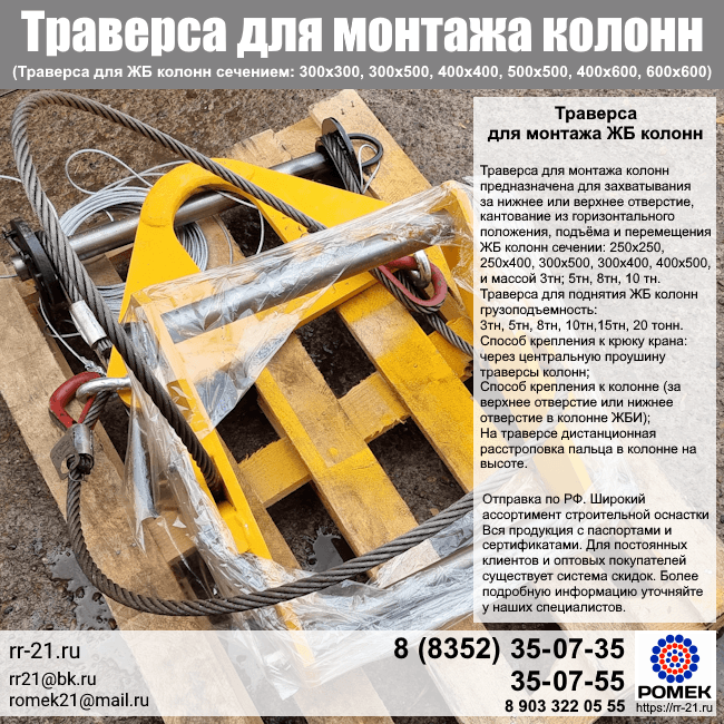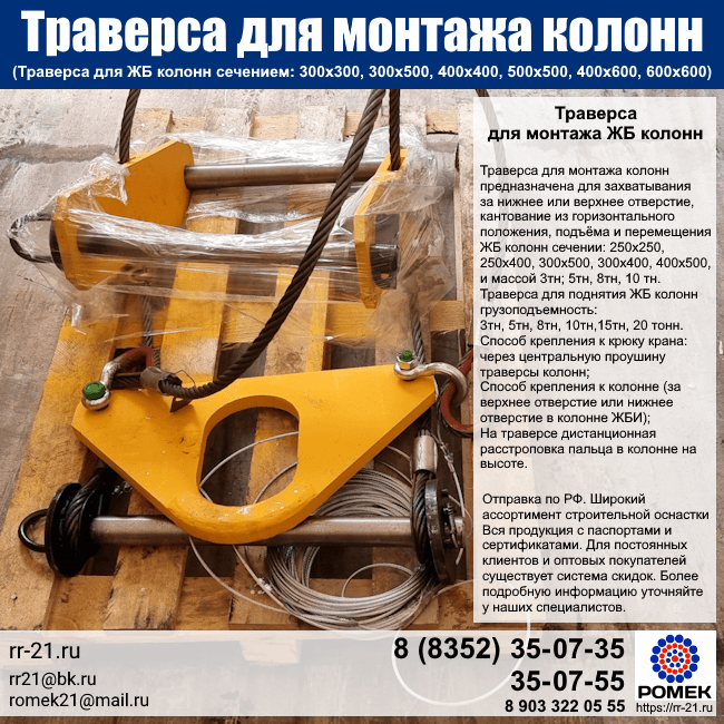 - Траверса для поднятия ЖБ колонн--грузоподъемность: 3тн, 5тн, 8тн, 10тн,15тн, 20 тонн;