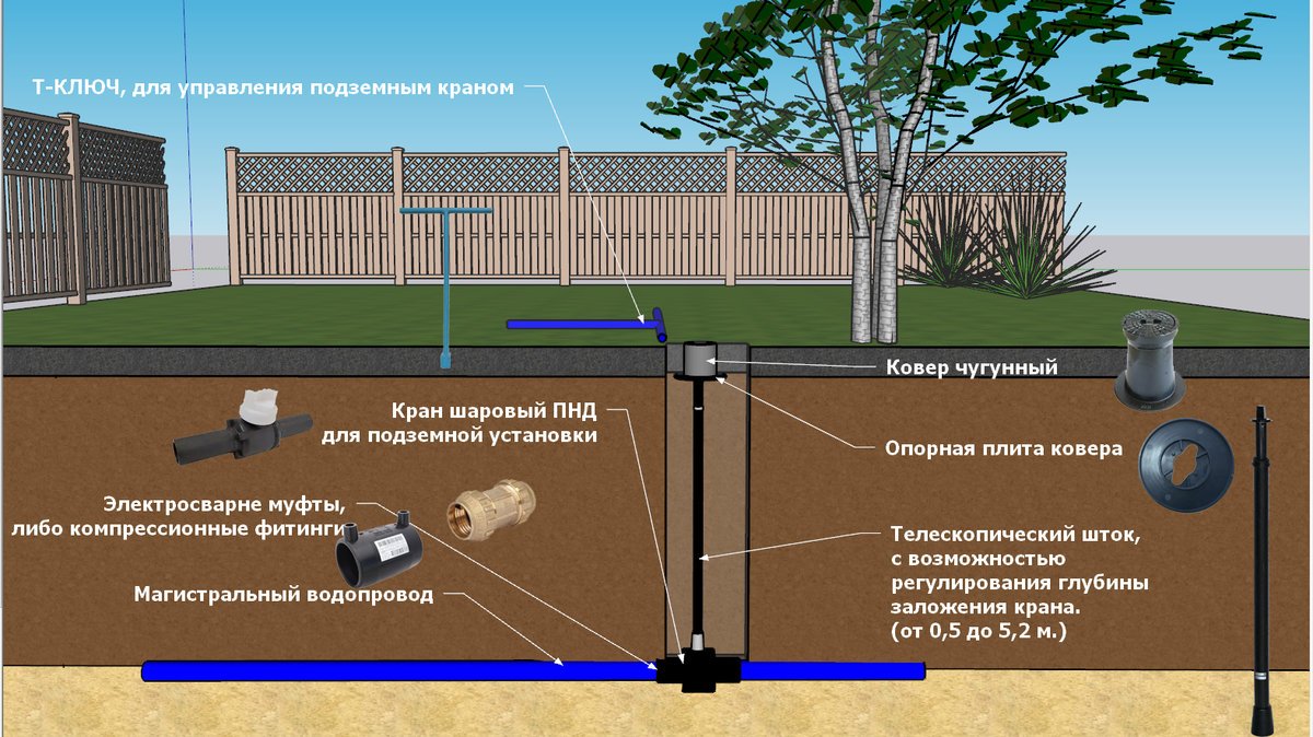 Запорная арматура монтируется прямо на проложенный трубопровод и заглубляется в грунт.