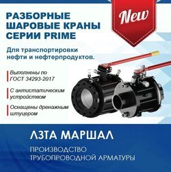 Компания ЛЗТА «Маршал» расширяет ассортимент производимого оборудования! В частности, представлены разборные шаровые краны новой серии PRIME, предназначенные специально для транспортировки нефти и нефтепродуктов.
